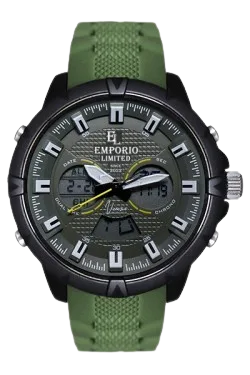 With a 50mm black alloy case and a military green strap, the Venezia 1334 B is both rugged and stylish. Featuring dual-time digital functionality, it’s ideal for those who need a versatile, multi-functional timepiece.