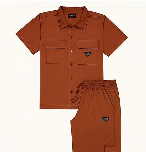 Premium Rust Brown Shirt & Shorts – Men’s Set